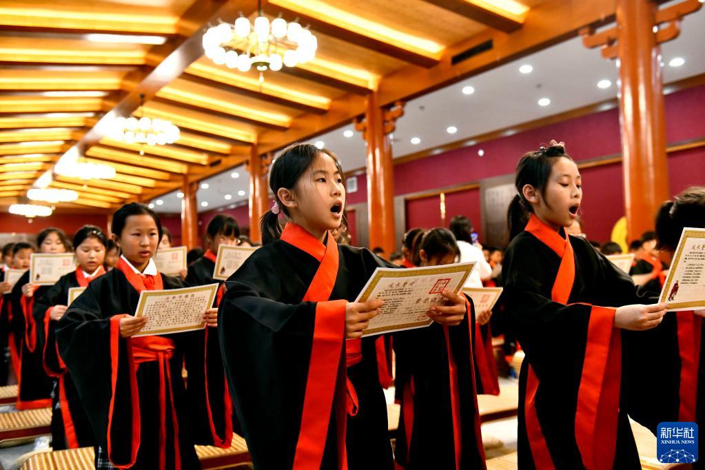 2023年6月9日,來自濟南大學附屬小學的同學們在曲阜市參加研學活動,并誦讀經典。