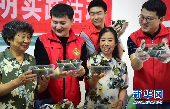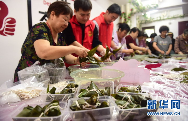 6月20日,河北滄州市運河區紀委監委工作人員與雙金社區居民共同包起“廉心粽”。新華網發(謝辛 攝)