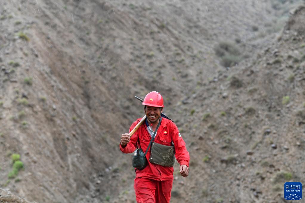 大雨突降,東方物探公司塔里木物探處2170隊的一名鉆工快步跑回營地(6月18日攝)。新華社記者 胡虎虎 攝