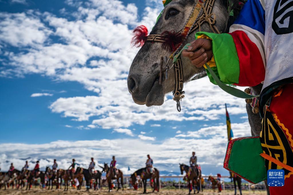 當日,作為第十八屆珠峰文化旅游節的活動之一,“策馬歡歌·珠峰云際”賽馬活動在西藏日喀則市桑珠孜區舉行。