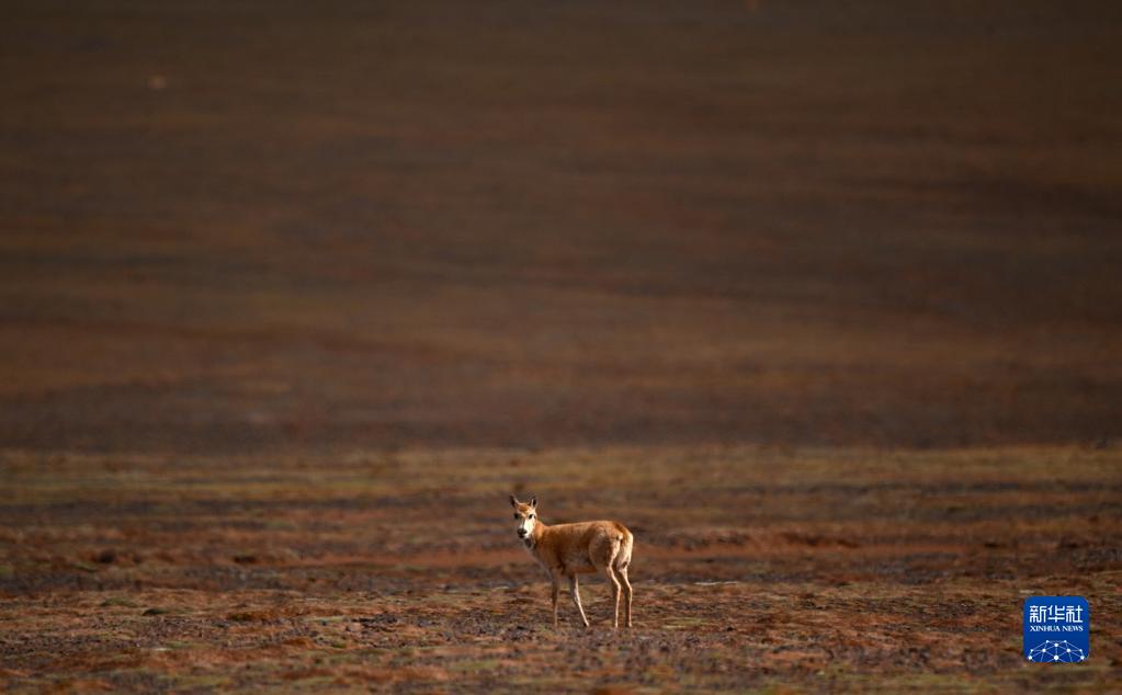 一只藏羚羊在可可西里卓乃湖區域活動(6月17日攝)。