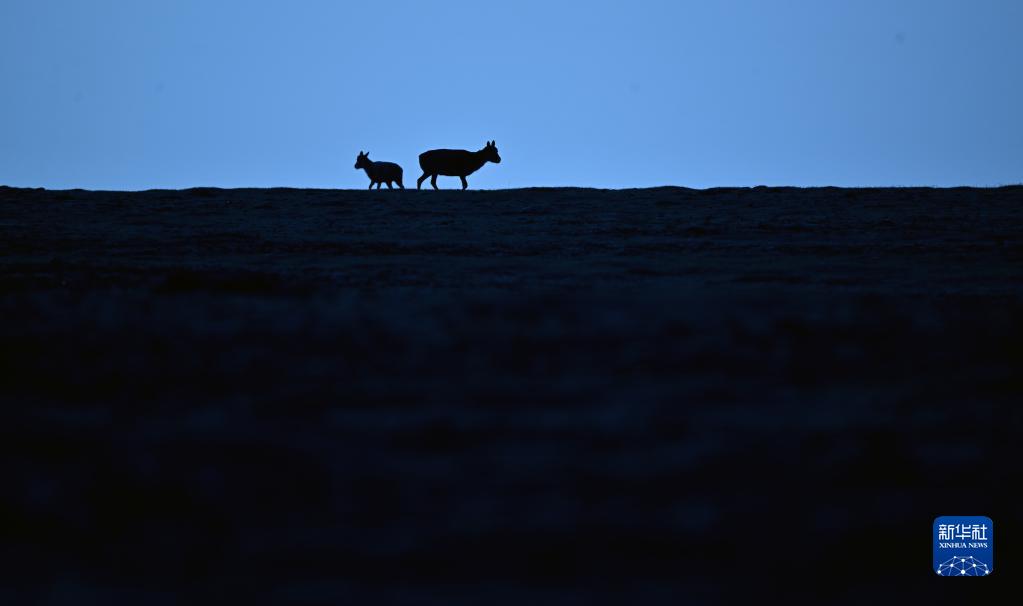 兩只藏羚羊在可可西里卓乃湖區域活動(6月18日攝)。