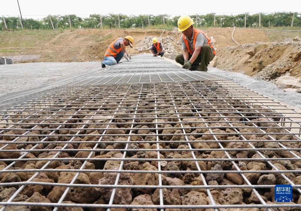 6月20日,工人在河北省盧龍縣木井鎮境內的龍鳳河水生態治理工程工地施工。