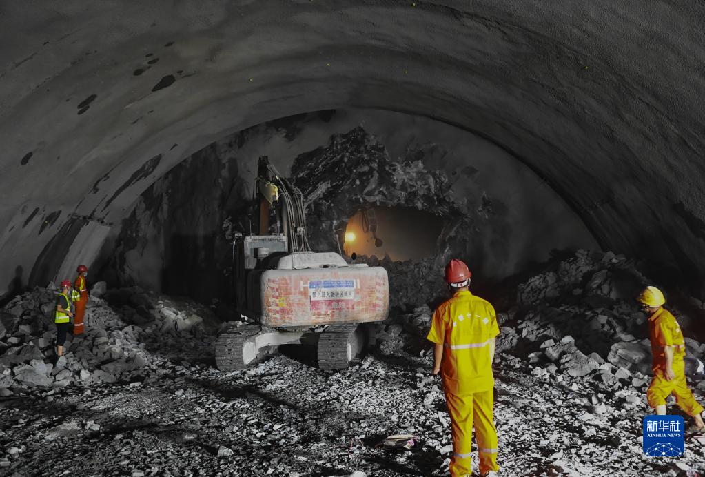 6月20日,施工人員在城仔山隧道左洞爆破貫通后清理碎石。
