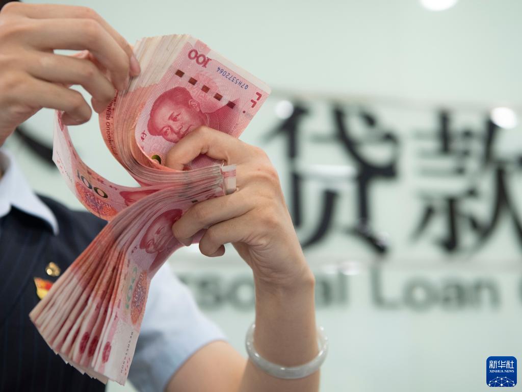 6月20日,江蘇省海安市一家銀行的工作人員在清點人民幣。