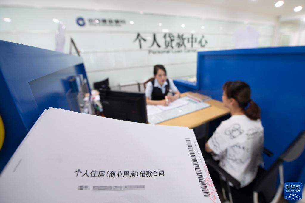 6月20日,江蘇省海安市一家銀行的個人貸款中心工作人員為客戶辦理個人貸款業務。