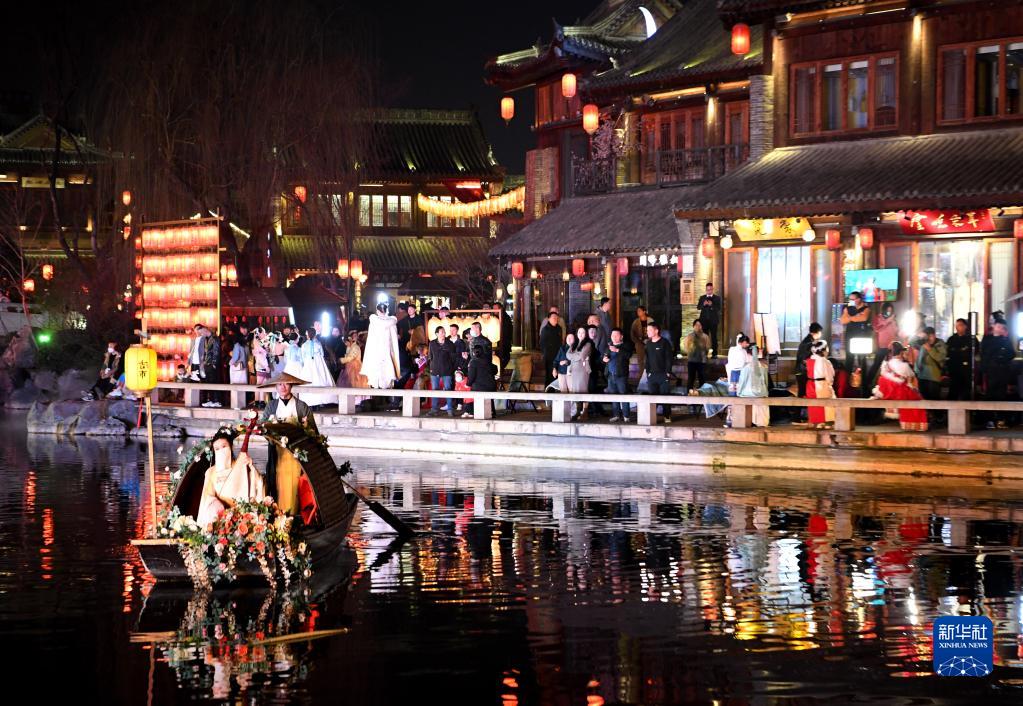 游客在洛陽市洛邑古城游玩(2023年2月28日攝)。