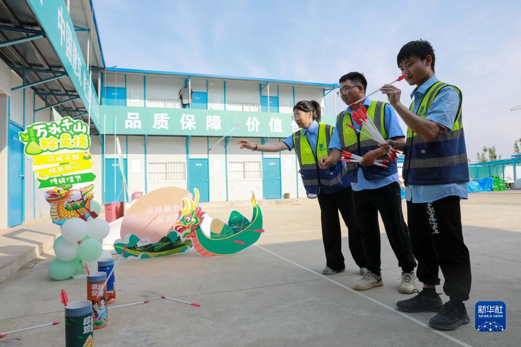 6月20日,工人在中建二局安徽合肥肥西產城融合安置點二期項目工地參加趣味競技活動。