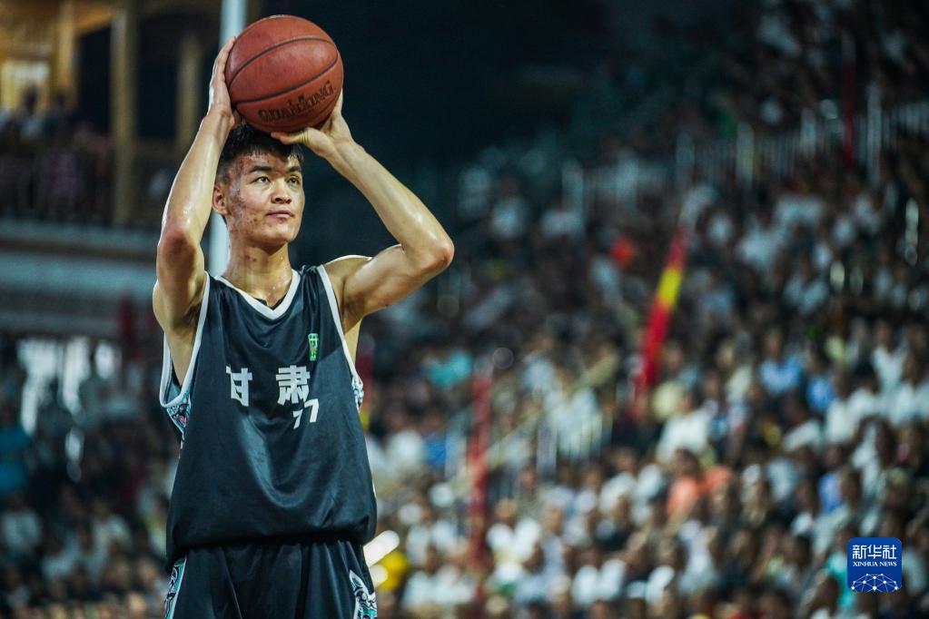 6月20日,甘肅臨夏州代表隊球員在比賽中罰球。