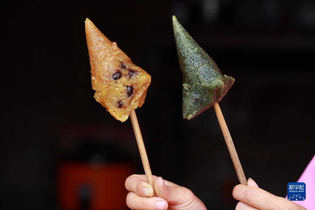 6月16日,在貴州省黔東南苗族侗族自治州劍河縣柳川鎮加禾村,村民展示煮熟的粽子。