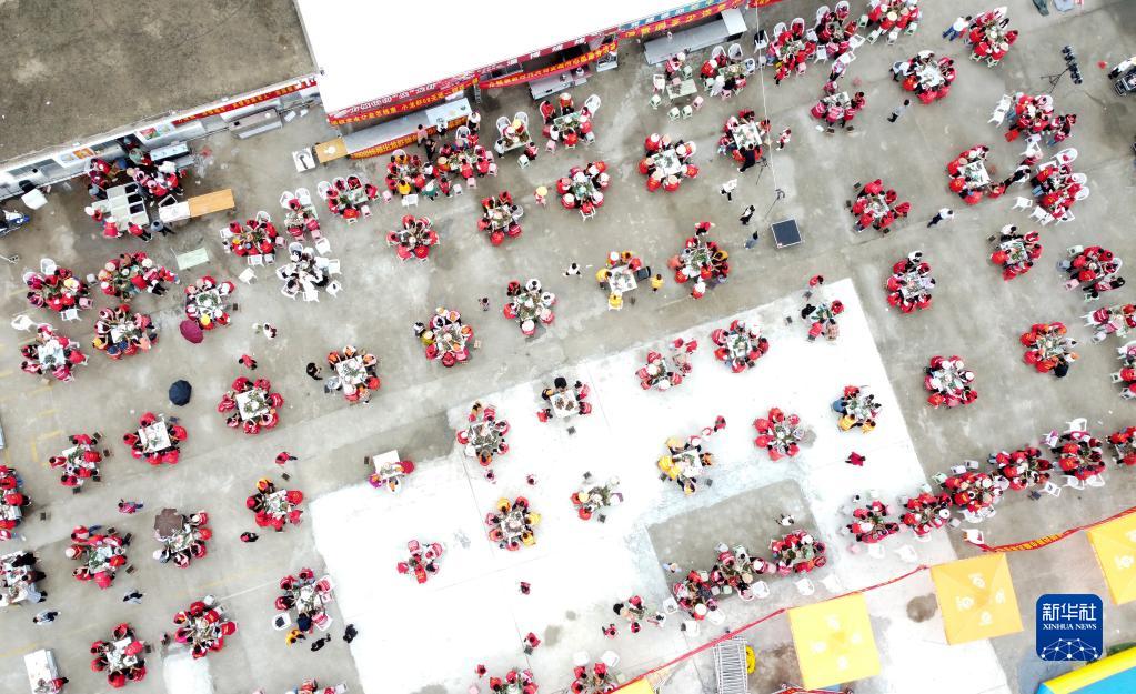 6月20日,在山東省臨沂市蘭山區方城鎮,數十個村子的上千人參加包粽子比賽(無人機照片)。