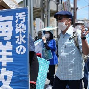 6月20日,人們在日本福島市參加反對核污染水排海的抗議活動。