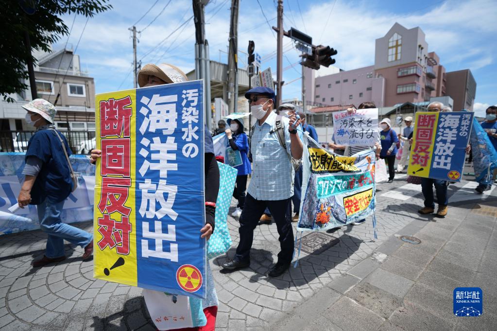 6月20日,人們在日本福島市參加反對核污染水排海的抗議活動。