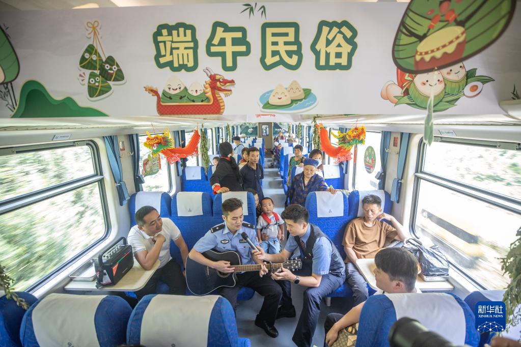 端午小長假來臨之際,一輛載著300余名旅客的5630次列車從遵義站緩緩駛出,前往重慶西站。與之前搭乘的“慢火車”不同的是,旅客乘坐該趟列車,不僅可欣賞沿途各地的風景,還能在列車上逛“集市”、看節目、包粽子,在旅途中體驗別樣的端午民俗。