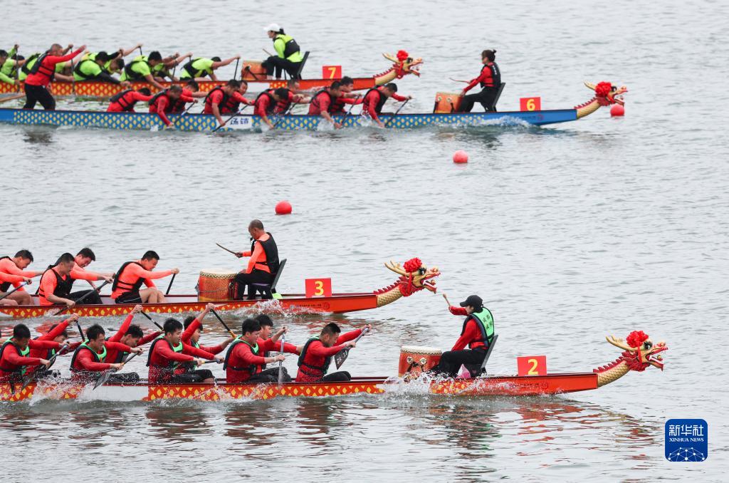 6月21日在四川省樂山市夾江縣拍攝的龍舟競渡比賽。