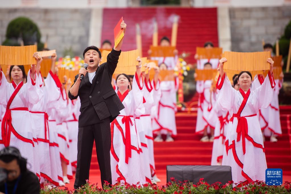 6月21日,演員在開幕式上表演詩朗誦《離騷》(節選)。