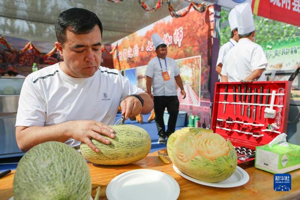 6月21日,參展商在美食展上展示雕瓜技藝。