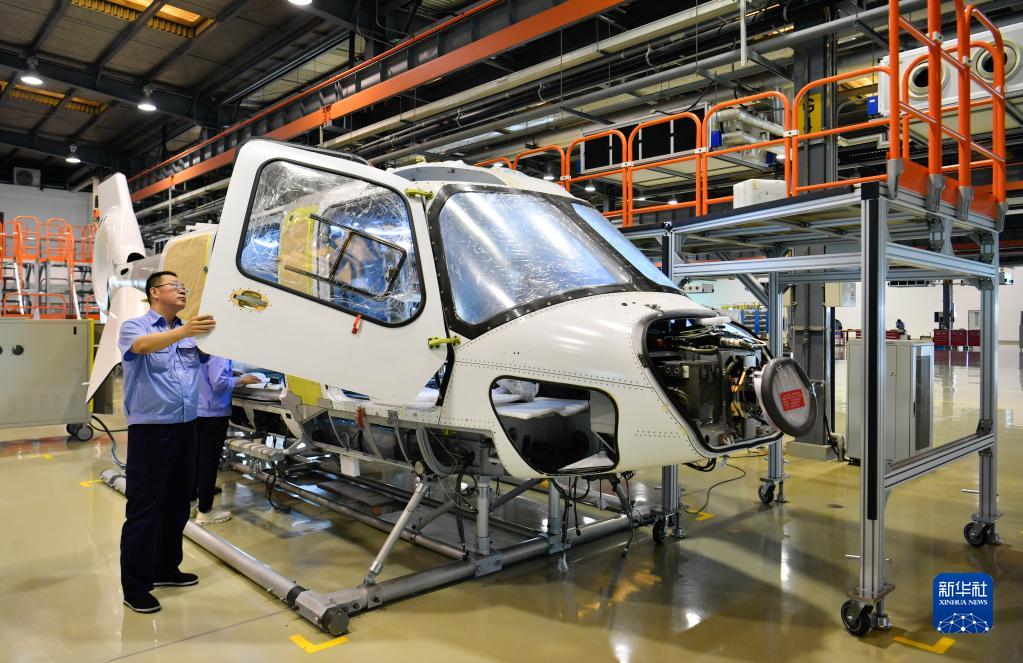 6月20日,工作人員在航空工業天津直升機有限責任公司組裝生產一架AC332型民用直升機。