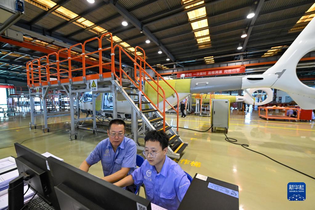 工作人員在航空工業天津直升機有限責任公司查看產品圖紙(6月20日攝)。