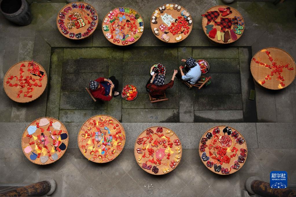 安徽省黃山市歙縣許村是一座有著上千年歷史的古村落。每年端午節,父母、長輩給孩子們送虎頭鞋、香囊掛件等是許村世代相傳的習俗。如今,許村仍有不少村民堅持手工縫制虎頭鞋、編制香囊掛件,這些“守藝人”希望能留住鄉村的文化底色,讓更多人了解、學習傳統技藝。