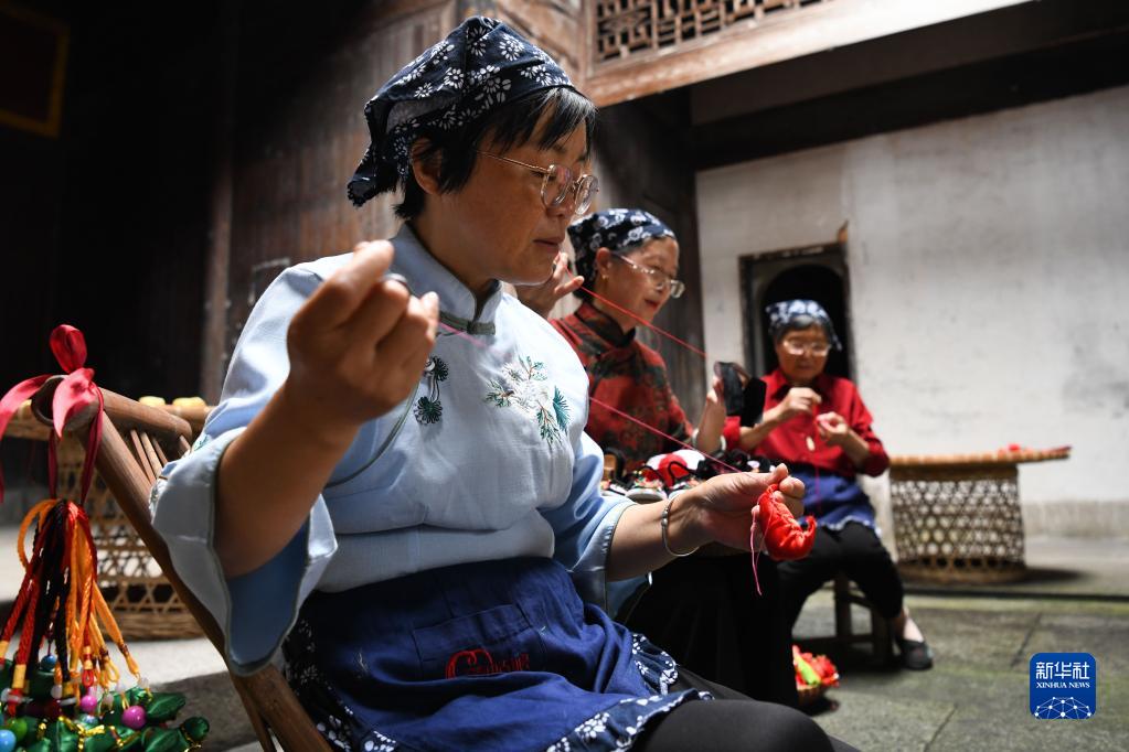 安徽省黃山市歙縣許村是一座有著上千年歷史的古村落。每年端午節,父母、長輩給孩子們送虎頭鞋、香囊掛件等是許村世代相傳的習俗。如今,許村仍有不少村民堅持手工縫制虎頭鞋、編制香囊掛件,這些“守藝人”希望能留住鄉村的文化底色,讓更多人了解、學習傳統技藝。