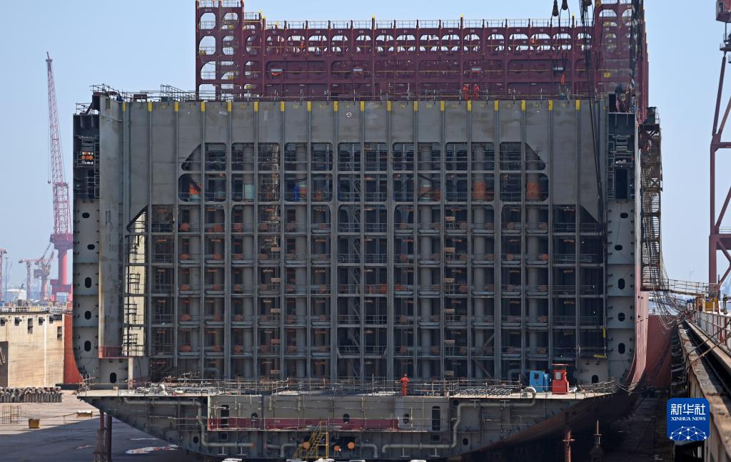 6月21日,在中船(天津)船舶制造有限公司廠區,船塢內正在建造一艘大型集裝箱船。
