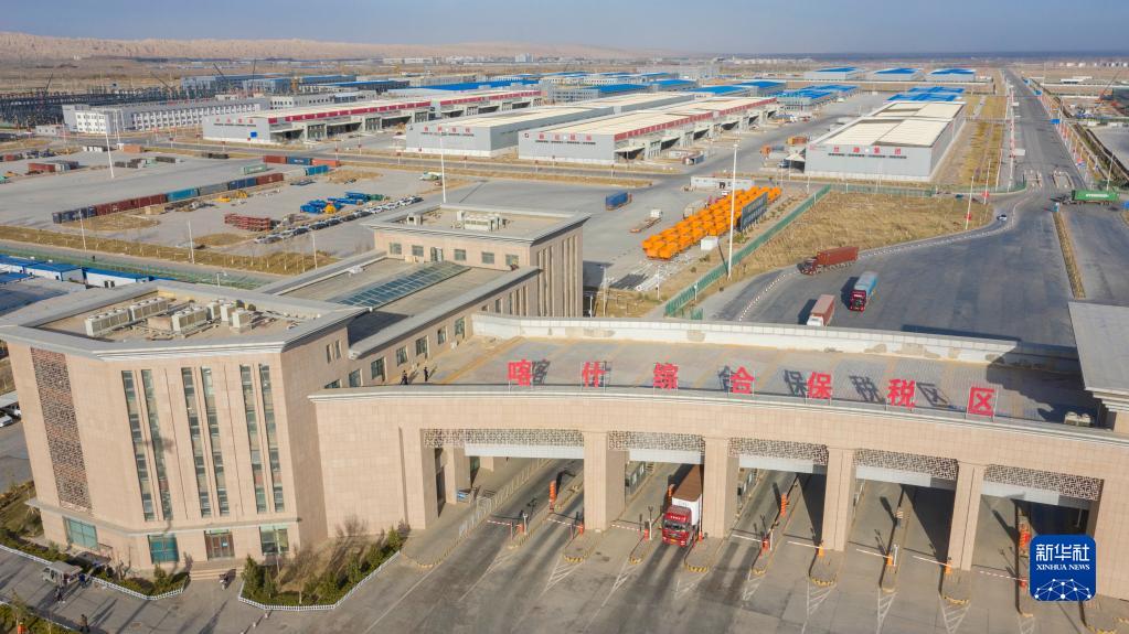 新疆喀什綜合保稅區外景(3月9日攝,無人機照片)。新華社記者 胡虎虎 攝
