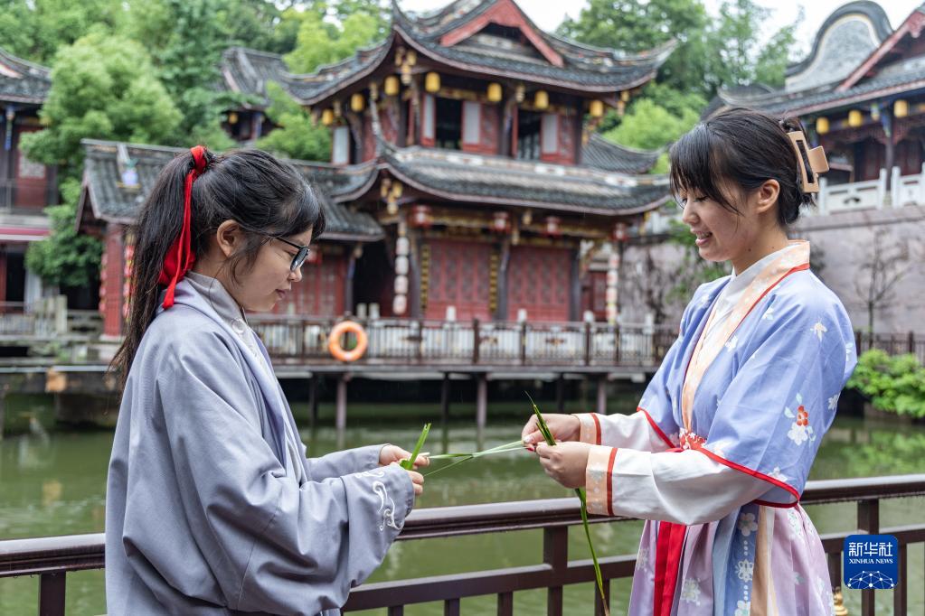 每年的農歷五月初五,是中國傳統節日端午節。在重慶市璧山區秀湖公園內的九門仙俠小鎮, 游人行走其中,體驗包粽子、制香囊、識草藥、放河燈等傳統民俗活動,近距離感受端午的節日氛圍和文化內涵。