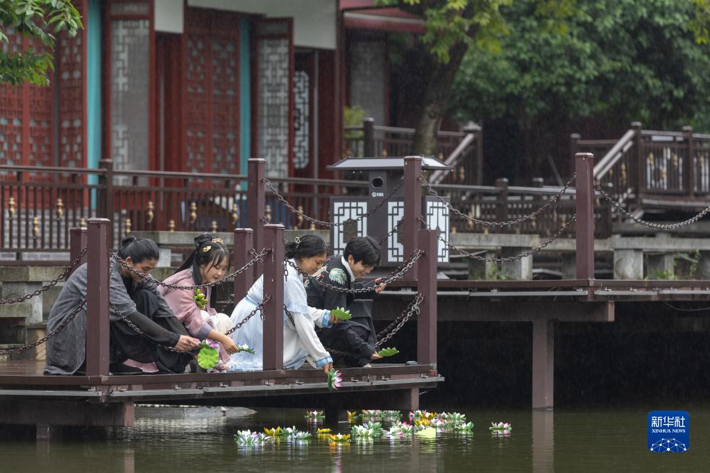 每年的農歷五月初五,是中國傳統節日端午節。在重慶市璧山區秀湖公園內的九門仙俠小鎮, 游人行走其中,體驗包粽子、制香囊、識草藥、放河燈等傳統民俗活動,近距離感受端午的節日氛圍和文化內涵。