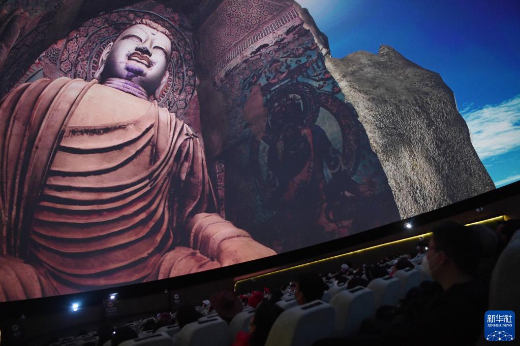 游客在莫高窟數字展示中心觀看球幕電影《夢幻佛宮》(3月14日攝)。