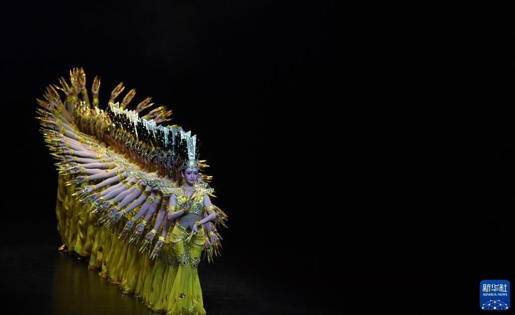 中國殘疾人藝術團演員在敦煌大劇院表演大型情景音畫劇《千手千眼》(6月18日攝)。