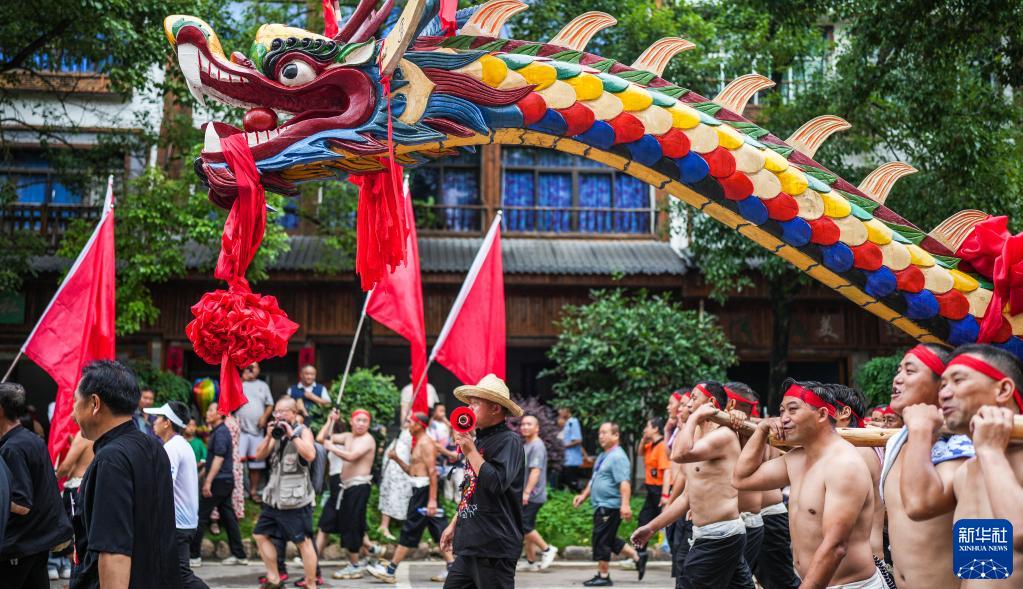 6月22日,在貴州省黔東南苗族侗族自治州施秉縣舉行的獨木龍舟節上,獨木龍舟進行巡游。