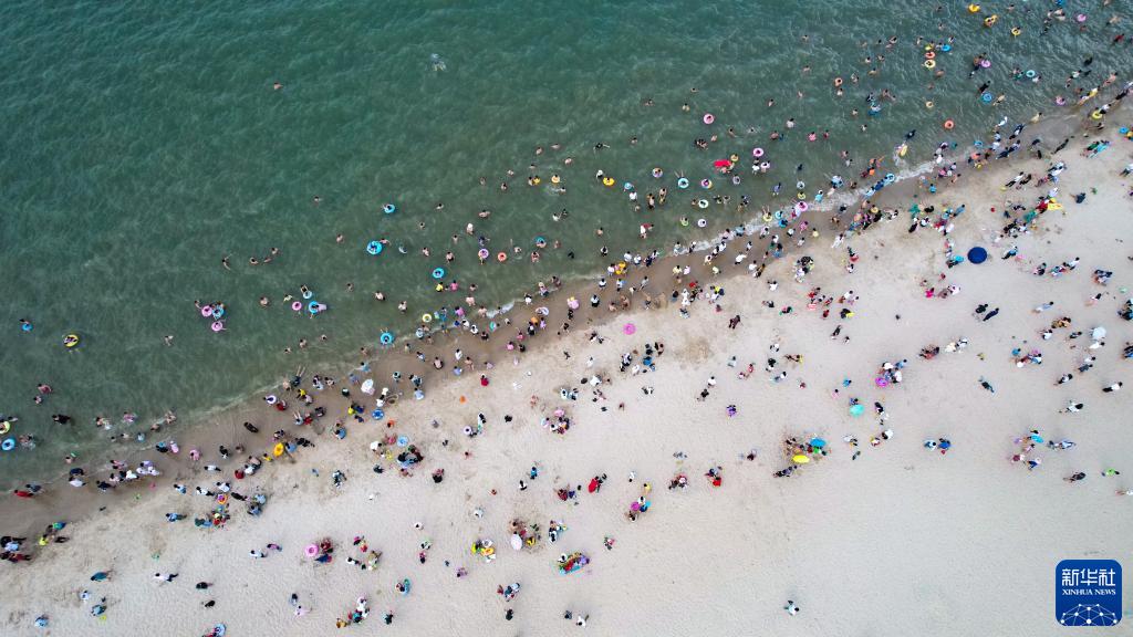 6月22日,人們在??诩偃蘸跋待埶保o人機照片)。