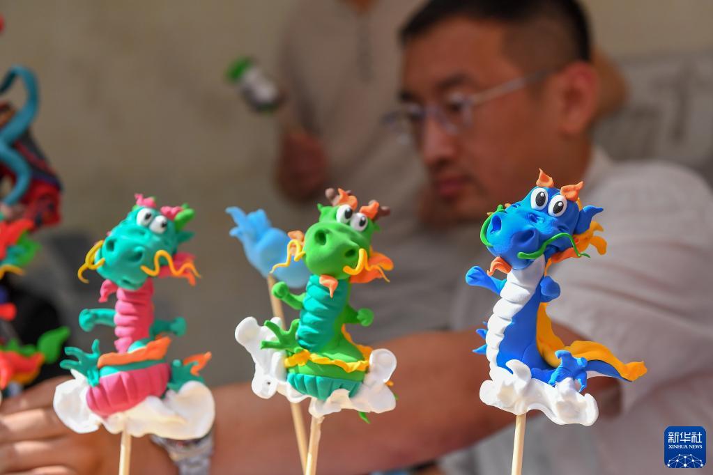 6月22日,手工藝人在吉林省長春市伊通河工業軌跡公園展示非遺手工藝項目。