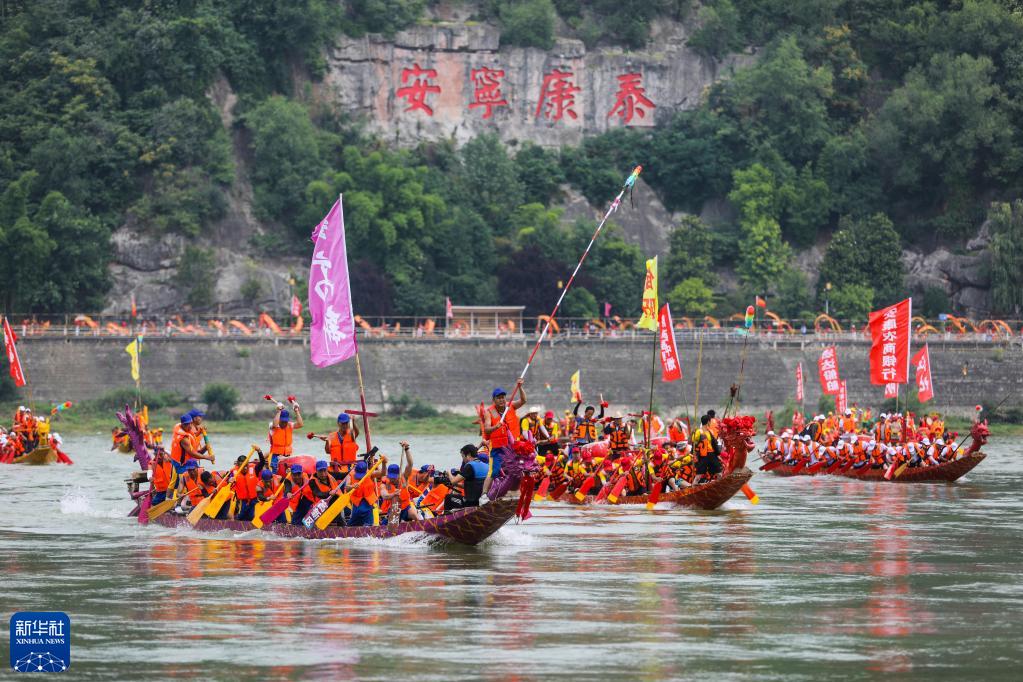 6月22日,第二十三屆中國安康漢江龍舟節開幕,28支當地參賽隊伍在漢江上表演龍舟競渡,喜迎端午佳節。