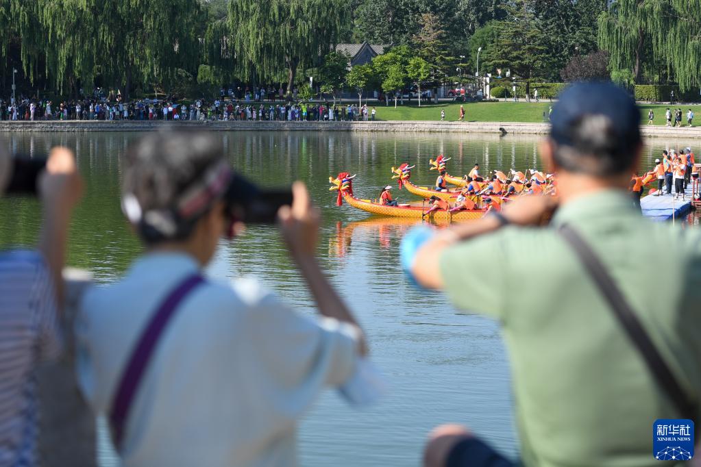 當日,2023龍潭端午文化節活動在北京市東城區龍潭公園舉辦,包括龍舟比賽、文藝演出、展覽互動體驗等。游客在這里共度端午節日,體驗多彩民俗。