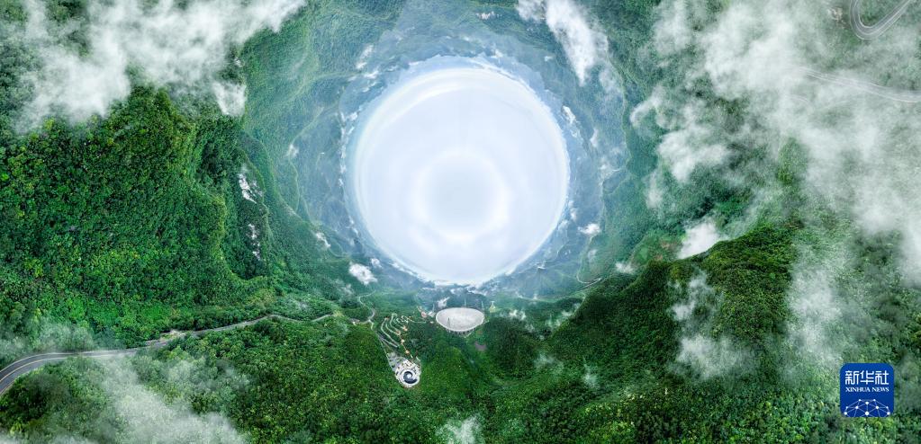 6月22日拍攝的“中國天眼”全景(維護保養期間拍攝,無人機全景拼接照片)。