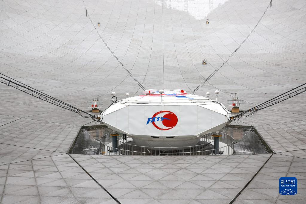 6月22日拍攝的“中國天眼”饋源艙(維護保養期間拍攝)。