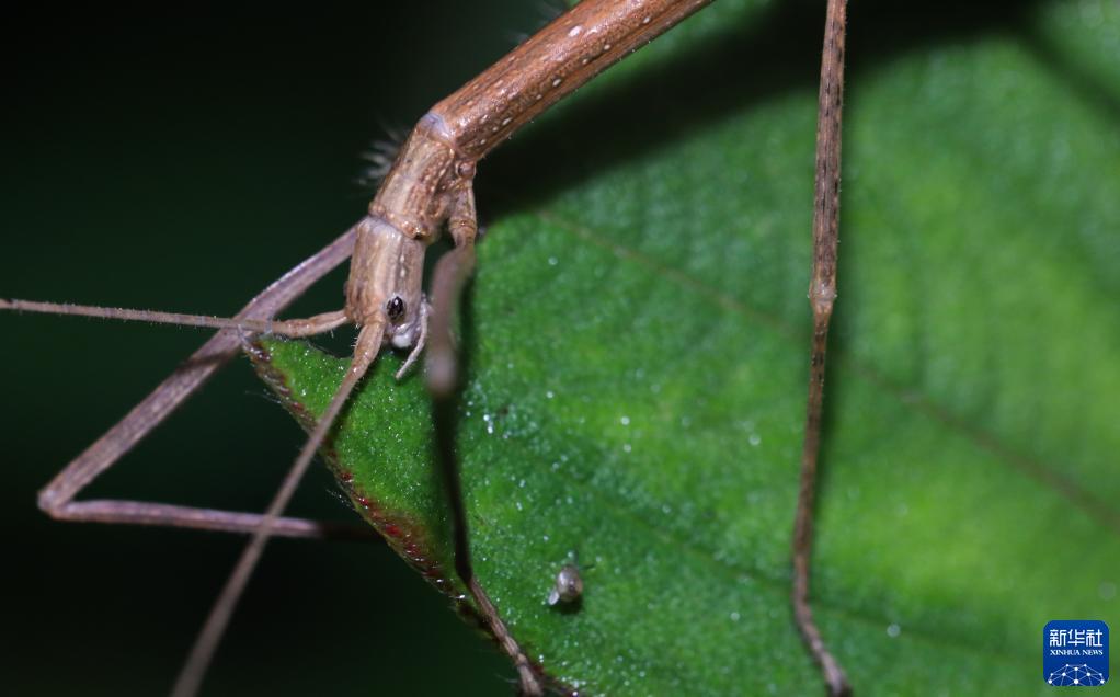 在海南熱帶雨林國家公園吊羅山片區,竹節蟲在進食(6月13日攝)。