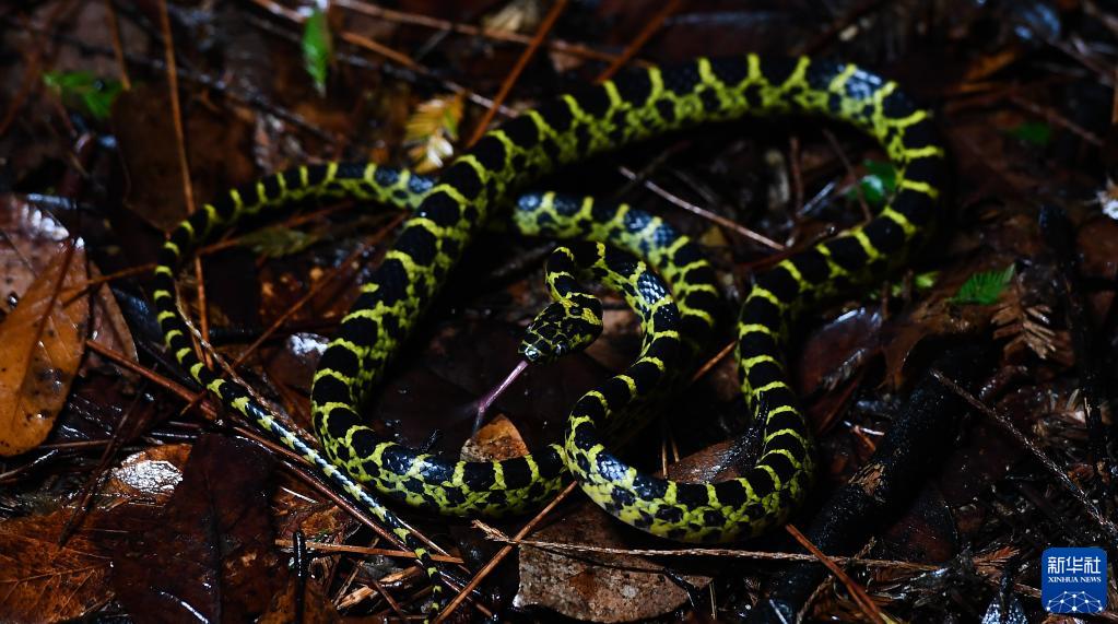 這是在海南熱帶雨林國家公園吊羅山片區拍攝的黃鏈蛇(6月13日攝)。