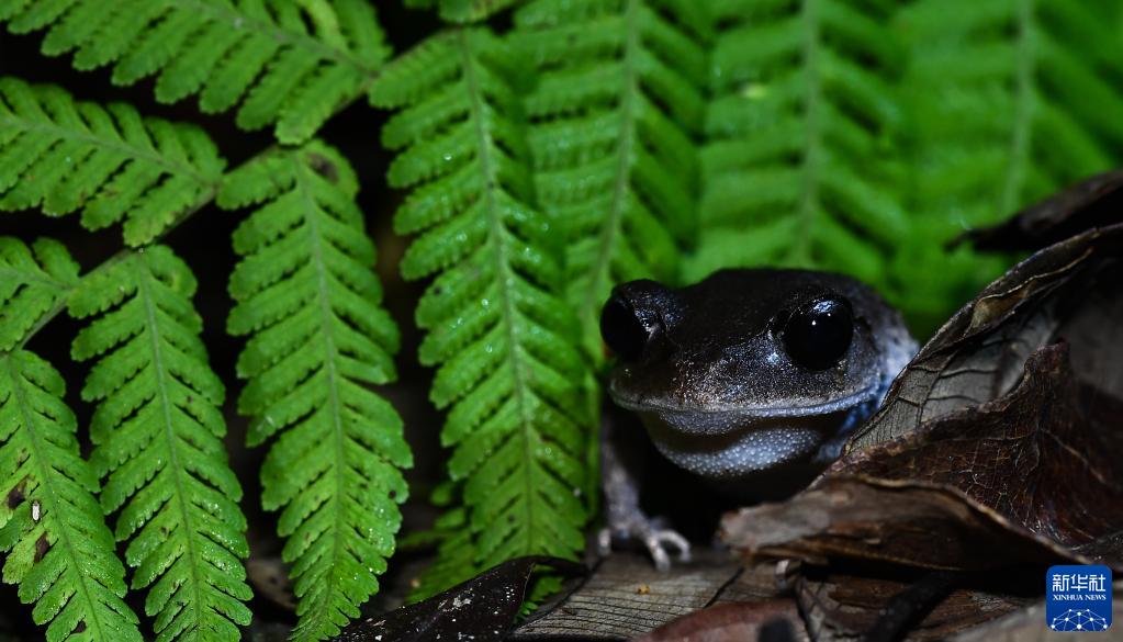 這是在海南熱帶雨林國家公園吊羅山片區拍攝的海南擬髭蟾(6月14日攝)。