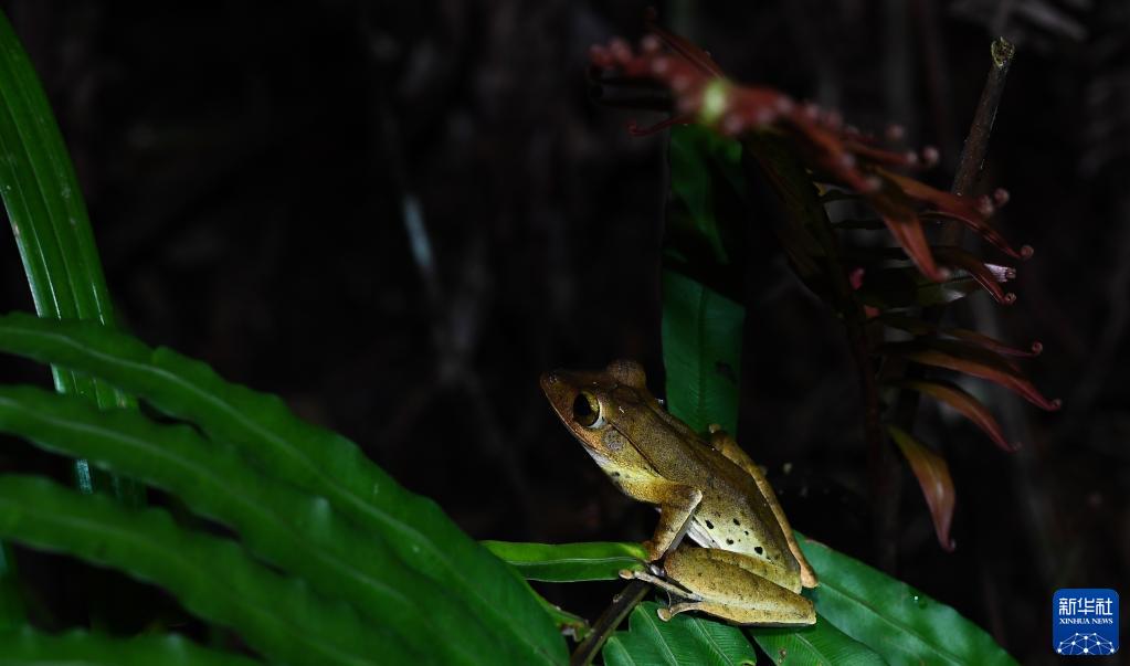 這是在海南熱帶雨林國家公園吊羅山片區拍攝的斑腿泛樹蛙(6月14日攝)。
