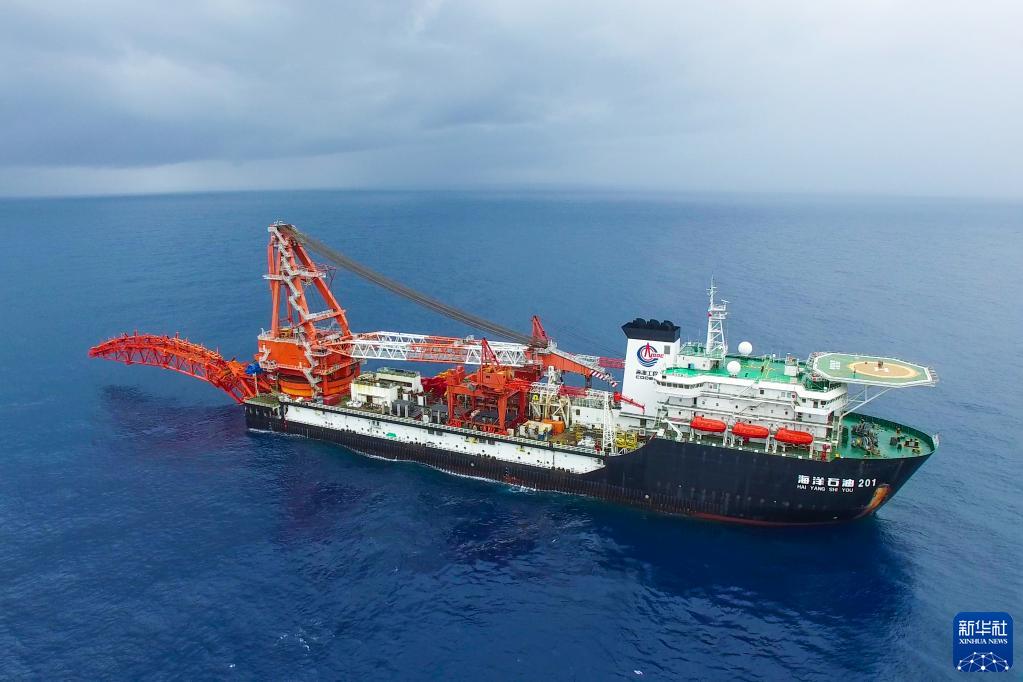 這是亞洲首艘3000米級深水鋪管起重船“海洋石油201”(6月22日攝)。