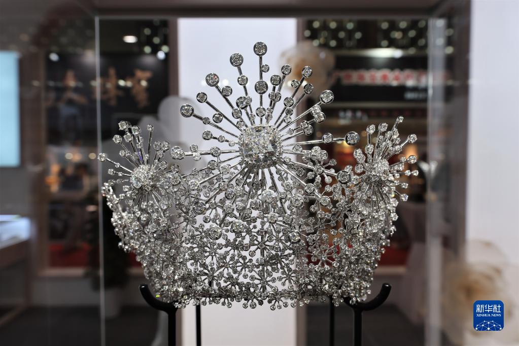 6月22日在2023上海國際珠寶首飾展覽會上拍攝的鉆石皇冠“永恒之星”。