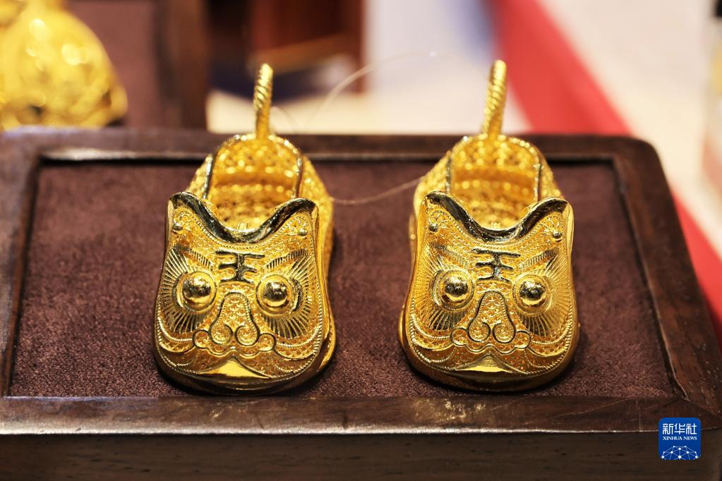 6月22日在2023上海國際珠寶首飾展覽會上拍攝的虎頭鞋飾品。