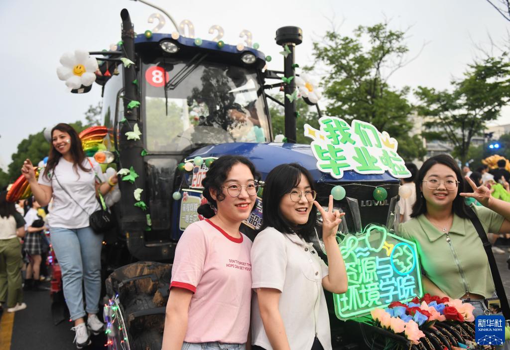 當日,為迎接畢業季,華中農業大學舉行了一場花車巡游,學生們簇擁著由現代農機裝備組成的花車隊伍,在校園里巡游,慶祝畢業、致敬青春。