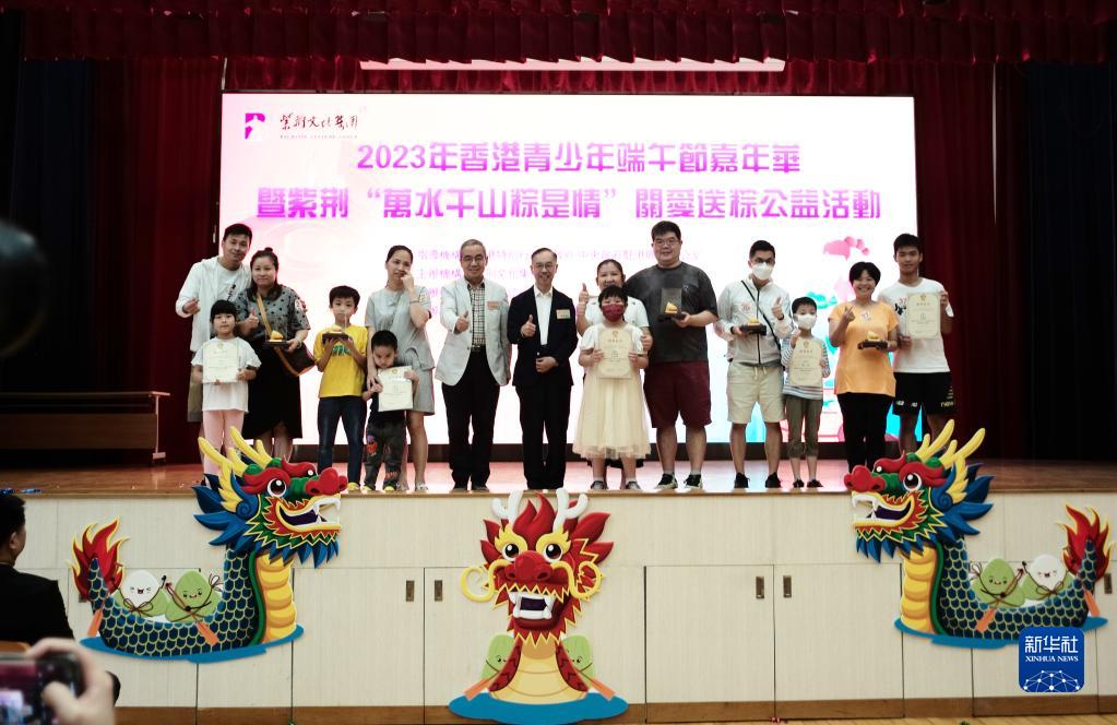 在香港漢華中學,活動現場合影(6月18日攝)。