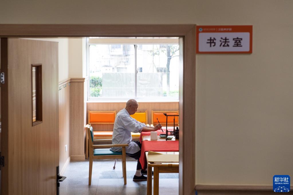 6月20日,老年人在漢壽縣漢醫養護院練習書法。