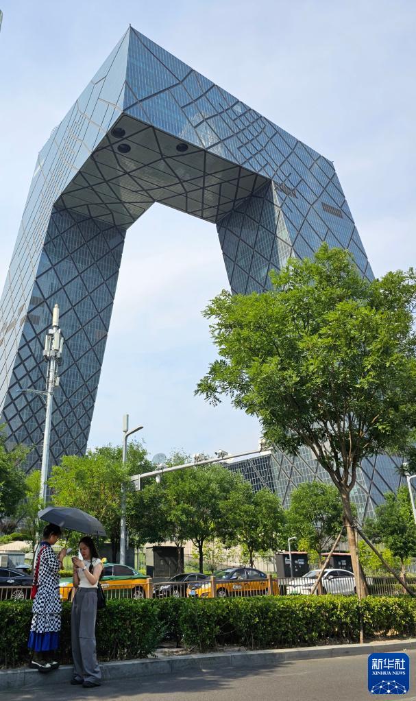 6月23日,兩名女子站在北京街頭的樹蔭下。