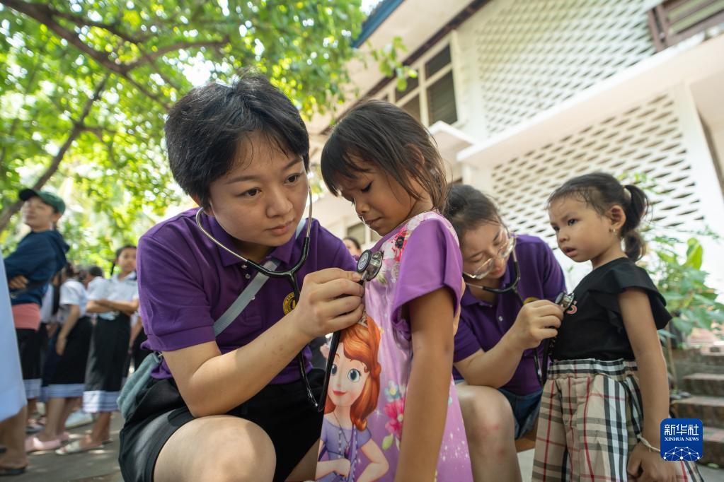 6月17日,在老撾北部瑯勃拉邦,中國醫療組對當地兒童進行先心病免費篩查。